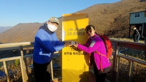 한국고갯길 1000km의 달성, 그 영광의 두 번째 기념패치를 받게 된 주인공은 바로 '박영미' 참가자다.2019년 2월, 남양주 다산길과 운길산, 예봉산 트레킹 행사 때에 홀로 참가하여 텐트를 능숙하게 치고 주무시던 참가자, 벌써 햇수로 2년이 되었으니 꽤 오랜 시간을 함께 해 오게 되었다. 경기만 소금길 대장정, A, B코스를 완주하여 누적 1,000km를 채우게 된 박영미 참가자, 11월 14~15일 열린 한국고갯길 투어(KHT TOUR) in 울산 영남알프스 행사를 통해 1,000km 기념 패치를 증정하며 함께 이야기를 나누