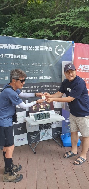 그랑프리가 시작되고 가장 눈에 띈 참가자가 윤진호님이다. 출발 전 3등만 하겠다고 인터뷰하고는 제일 먼저 들어와서 여유있게 쉬는 모습이 인상적이었다. 뒤에 누가 쫓아오는 게 싫어서 가장 먼저 왔다고 말하지만 늘 겸손하고 주변 사람을 잘 챙기는 그가 이번에 누적 1,000km라는 대기록을 달성했다. (이하 한국고갯길은 ‘KHT’, 윤진호님은 ‘윤’으로 표기한다.)KHT : 1,000km, 진안고원길 200km 축하드립니다. 소감 부탁드립니다.윤 : 먼저 진안고원길의 경우 완주를 목표로 온 것도 있고 발(물집)을 관리하면서 완주할 수