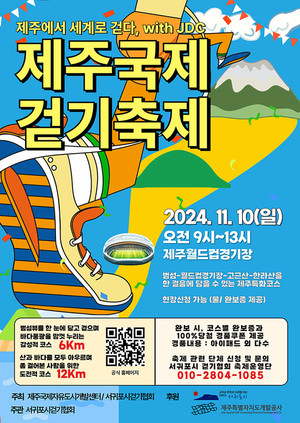 서귀포시걷기협회(회장 조훈배)가 주최하고 JDC 제주국제자유도시개발센터(이사장 양영철)가 주관하는 ‘2024 제주국제걷기축제’가 오는 10일 제주월드컵경기장 일원에서 개최된다. 제주국제자유도시개발센터의 도민 지원사업의 하나로 개최되는 이번 행사는 ‘제주에서 세계로 걷다’를 슬로건로 6km와 12km 두 가지 코스 중 하나를 선택해 바다와 산이 어우러진 제주의 아름다운 자연을 감상하며 걸을 수 있다. 주 행사장인 제주월드컵경기장 광장에는 오전 8시부터 시작되는 사전 행사로 다양한 문화공연과 부스별 체험행사가 펼쳐진다. 참가자에게는 볼