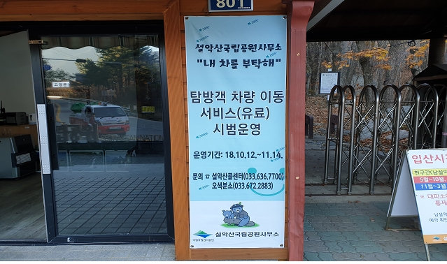 국립공원관리공단 설악산국립공원사무소(소장 김종완)는 지역사회와 함께 설악산의 탐방서비스를 높일 수 있도록 민간협력을 위한 아이템을 구상하여 올해 시범운영 하였고, 향후에도 세심한 성과 분석을 통하여 적극 이행할 계획이라고 밝혔다.