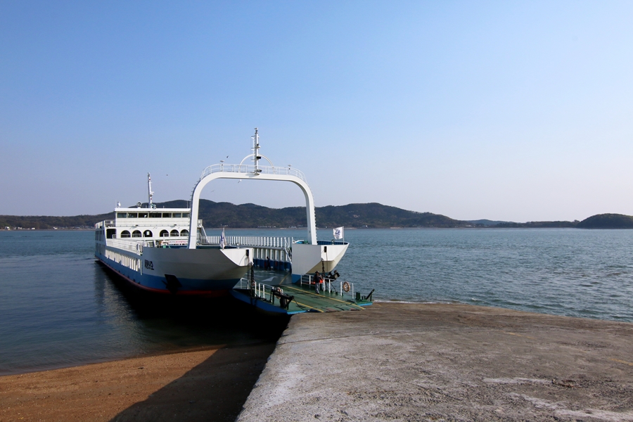 배 뒤쪽으로 보이는 섬은 신도로 시도, 모도와 함께 삼형제 섬을 이루는 가장 맏섬이다. 손에 잡힐 듯 가깝지만 바다가 갈라놓기에 페리로 10여 분을 가야 하는 섬이다.