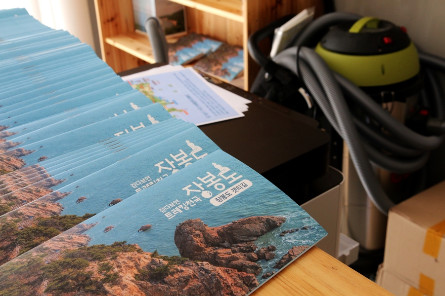 어느 코스가 좋을까 물으니 한참을 고민하신다. 모두 다 아름답다고 고르기가 애매하다 하시는데 바깥의 포스터와 가이드북 표지에 쓰인 기암괴석을 가리키니 그것은 '4코스 장봉해안길'이라고 한다. 그렇다면 그 장봉해안길을 걷도록 한다.