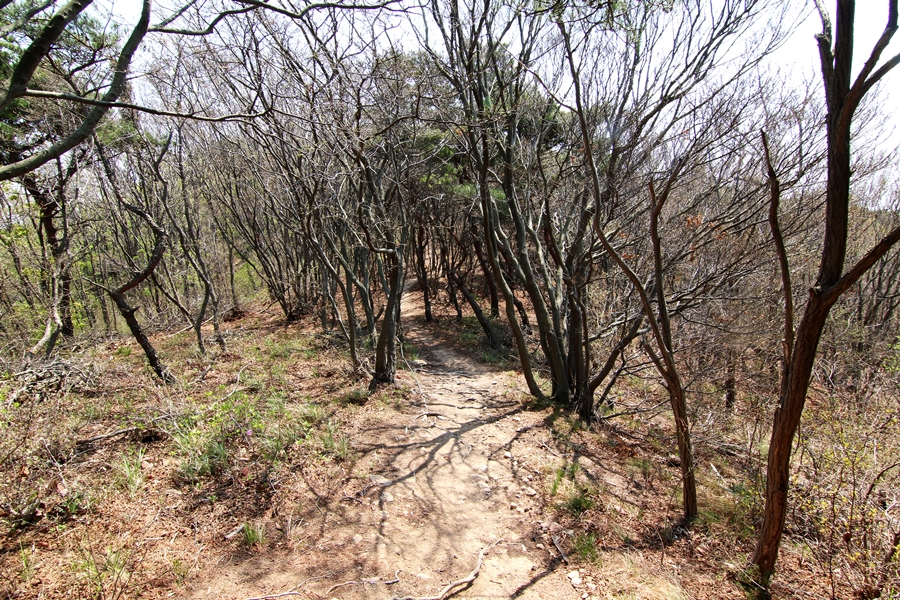 마을까지 이어지는 한 줄기 오솔길은 그 폭이 좁고 왼 편이 경사가 심한 비탈인 모양새가 영락없이 강화나들길의 한 구간을 빼어 닮았다. 발걸음을 빨리 재촉한지라 앞서거나 뒤따라는 이 하나 없는 산행이다. 맞은편에서도 오는 사람을 찾기 힘들다.