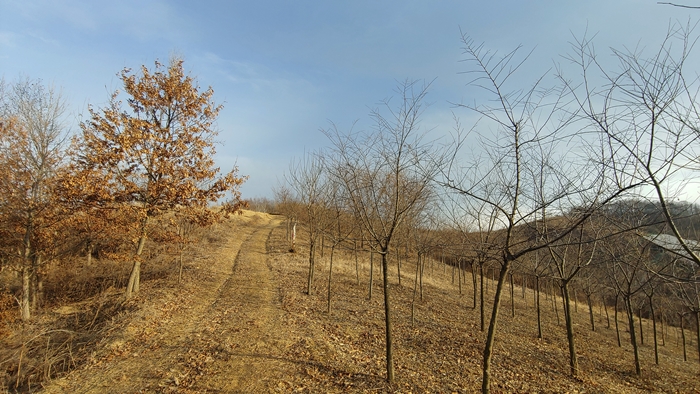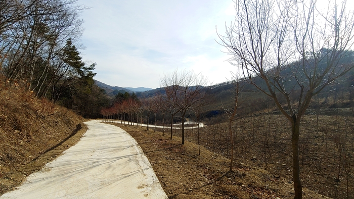 충분히 쉰 후 자리를 털고 일어난다. 농로는 다시 도로를 만나고 짧게나마 도로를 걷다보면 우측으로 숲길을 타게 된다. 심원재의 중턱까지 치고 오르는 숲길은 황금폭포 옆의 길 처럼 거리는 짧아도 난이도가 꽤 있는 편이다.