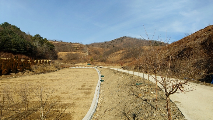 이 모래재휴게소에서 도로를 건너 맞은 편으로 공설묘지가 크게 있다. 진안고원길 6코스는 이 공설묘지를 통과하게 되어있다. 물론 묘지 사이를 걷는 것은 아니고 관리동으로 향하는 도로를 따라 걷는 것이니 크게 개의치 않아도 좋다.