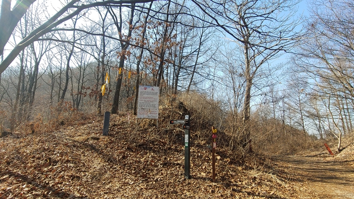 임도를 따라 오르다보면 3정맥 분기점이 나온다. 사실 고백하건데 이 곳이 3정맥 분기점인지도 모르고 그냥 지나칠 뻔 했음을 밝힌다. 구간 내에 3정맥 분기점이 있다는 것은 알았지만 내가 생각했던 그런 산봉우리나 큰 고지에서 세 정맥의 나뉨과 뻗어나감을 한 눈에 담아볼 수 있는 그런 지대는 아니었다.
