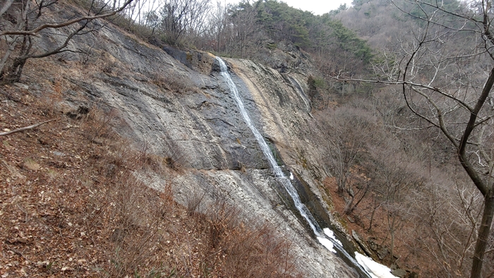 이윽고 마주한 황금폭포는 깎아내린 산의 절벽을 따라 한 줄기 물이 흐르는 멋진 풍경을 가진 폭포였다. 저 폭포 위로 농경지와 마을이 있기에 농사철이면 논의 흙이 섞여 노란 물이 쏟아진다 하여 황금폭포라 한다. 사실 농사를 짓는 이들에게 좋은 흙, 비옥한 땅이 황금이지 무엇이 황금이겠는가? 그 유래를 보니 과연 그렇다는 생각이다.