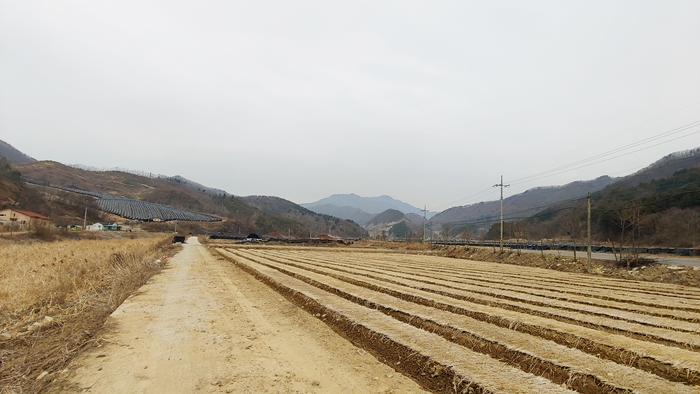 기나긴 도로를 따라 몇 개의 마을을 지나 신기마을에 이르러서 표식은 도로가 아닌 농작로로 안내한다. 농작로를 따라 걷다보니 어렴풋이 운장산이 보인다. 저 산 밑 어딘가에 심원재가 있고 마조마을이 있을 것이다.