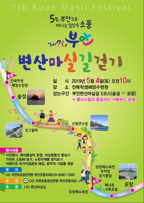 전북 부안군은 5월 4일 오전 전북학생해양수련원 일대에서 '제7회 변산 마실길 걷기' 행사가 열린다고 밝혔다.