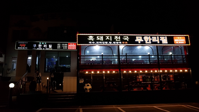● 메뉴 : 연탄초벌구이 흑돼지 무한리필 20,000원(성인), 12,000원(초등), 6,000원(유아)
