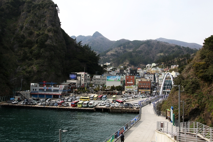 우리를 태운 배가 저동 혹은 도동항에 가까워질수록 그 신비로운, 그러나 등산 혹은 하이킹을 목표로 한 이들에게는 굉장히 위압감을 주는 봉우리들과 해안절벽의 기세는 강해졌다. 그렇게 떨리는 마음을 안고 내린 이 섬, 첫 번째로 도전할 길은 행남해안산책로와 저동옛길이다.