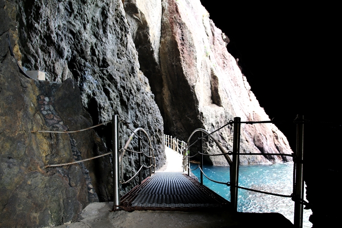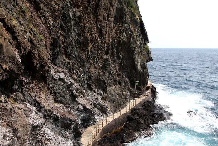 도동항 여객터미널까지의 멋진 교각을 따라 걸으면 여객터미널 옆으로 행남해안산책로로 이어지는 데크와 안내표식이 있다. 데크를 따라 약간 올라 동해의 푸른 바다를 조망하고, 뒤를 돌아 도동항의 풍경을 눈에 담는다. 그리고 데크를 돌아 내려서면 눈을 의심케 하는 환상적인 산책로가 펼쳐진다.