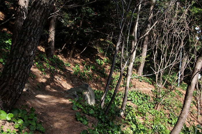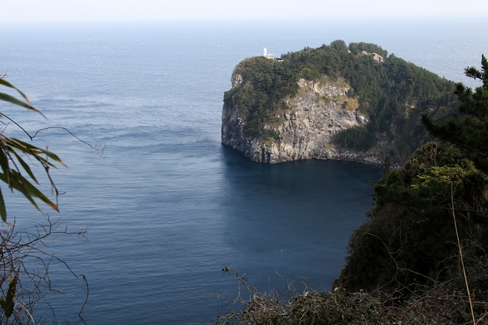 숨을 한참이나 몰아쉬며 걷다가 되돌아보니 지나쳐온 행남등대가 보인다. 어디만치나 왔는가 가늠해보니, 이제 벌써 이 옛길도 절정을 맞이한 셈이다. 전체구간 중 가장 높다 싶은 구간에서 잠시 숨을 고른다.