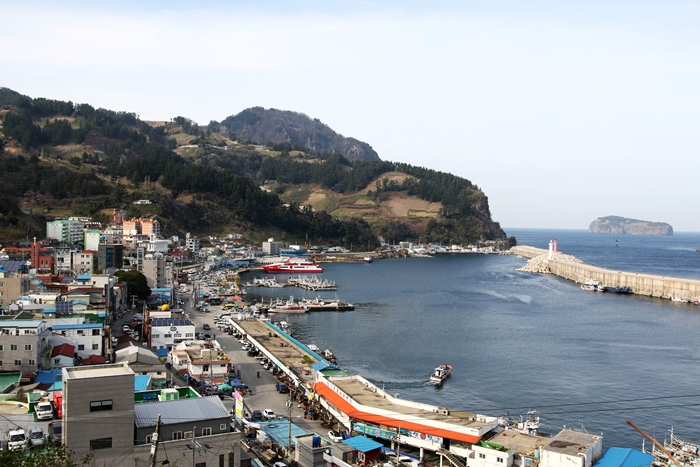 방금 전 출항하여 분주함이 사라진 도동항에서 여정을 시작한다.
