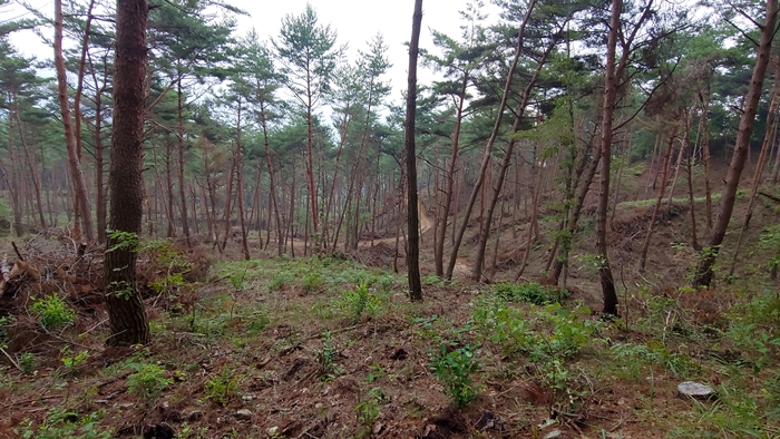 해당 구간은 1코스 구룡치를 지나 연리지 직전에 이르는 구간으로 산림 정비 공사를 하고 있다.