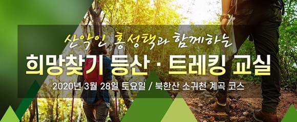 연예 스포츠 전문미디어 조이뉴스24는 등산 전문지 '사람과 산', '박영석탐험문화재단'과 함께 '희망찾기 등산·트레킹 교실'(이하 트레킹 교실)을 오는 28일 진행한다고 밝혔다. 이번 행사는 3월28일 오전 8시30분 서울 강북구 우이동 만남의 광장에서 진행되며 등산 기초 및 안전 산행법 강의, 해외 고산 트레킹 노하우 특강, 소귀천 계곡 산행 등의 일정이 준비되어 있다.