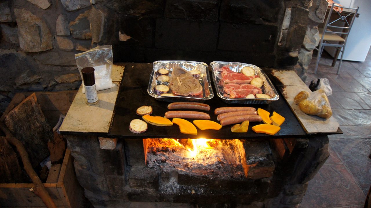 아늑한 주방 겸 다이닝 룸에서 장작불에 비프스테이크와 소시지, 단호박 및 감자로 바비큐를 해서 풍요로운 저녁 식사를 즐겼다.