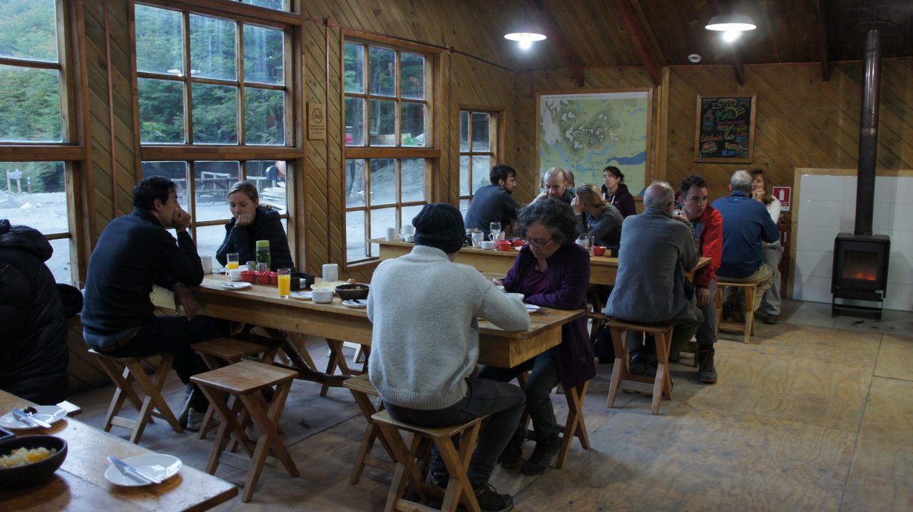 약 2 시간의 내리막을 걸은 후 다시 엘 칠레노 산장으로 돌아오니 저녁 식사 시간. 이 산장을 예약 할 때 다음날 점심 도시락 까지 준비해 주는 풀 보드 (Full board) 로 신청해서 저녁 및 다음날 아침 식사까지 제공 해 준다. 서둘러 방 배정을 받고 찬물이지만 샤워를 하고 나니 몸이 가볍다.