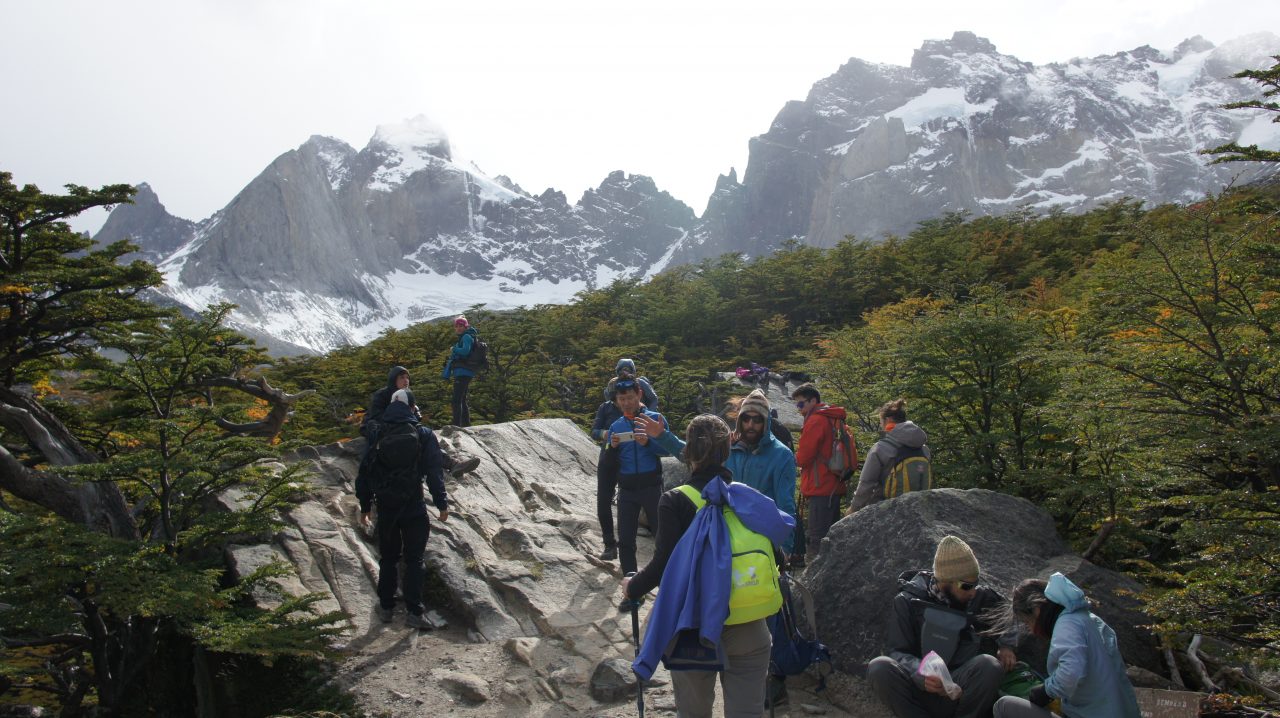 약 2 시간 정도 걸으니 눈앞에 엘 칠레노 (El Chileno) 산장이 나타난다. 이날 묵을 산장이라 간단히 등록을 하고 토레스 델 파이네가 보이는 호수까지 올라 갈 때까지 필요한 물과 비상식 등 최소한의 짐만 남겨두고 나머지는 맡기고 다시 트레킹을 계속하였다.