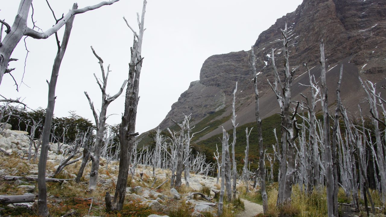 다소 실망하며 하산을 준비 하는데 갑자기 빗방울이 굵어지면서 세찬 바람과 함께 비가 본격적으로 내리기 시작한다. 우비를 뒤집어쓰고 하산하는데 비가 쉽게 그칠 것 같지 않다. 더욱이 바람은 계속 강도를 더하여 파타고니아 바람의 이름값을 하는 것 같다. 그나마 숲속 길에서는 견딜 만 한데 바위 위나 노출된 구간을 지날 때는 몸이 휘청거린다.