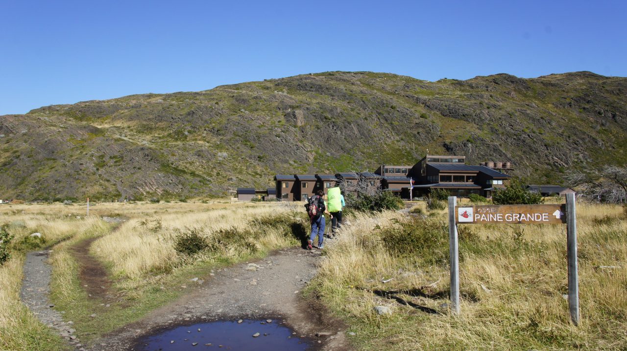 국립공원 입구안내소 부터 실제 트레킹 시작점인 라스 토레스 호텔(Hotel Las Torres) 입구 까지는 약 30 분 정도 또 셔틀 버스를 타고 가야 한다. 이 호텔 앞에 토레스 델 파이네 국립공원 안내 센터가 있는데 이곳을 지나면서 부터 본격적인 트레킹이 시작된다.