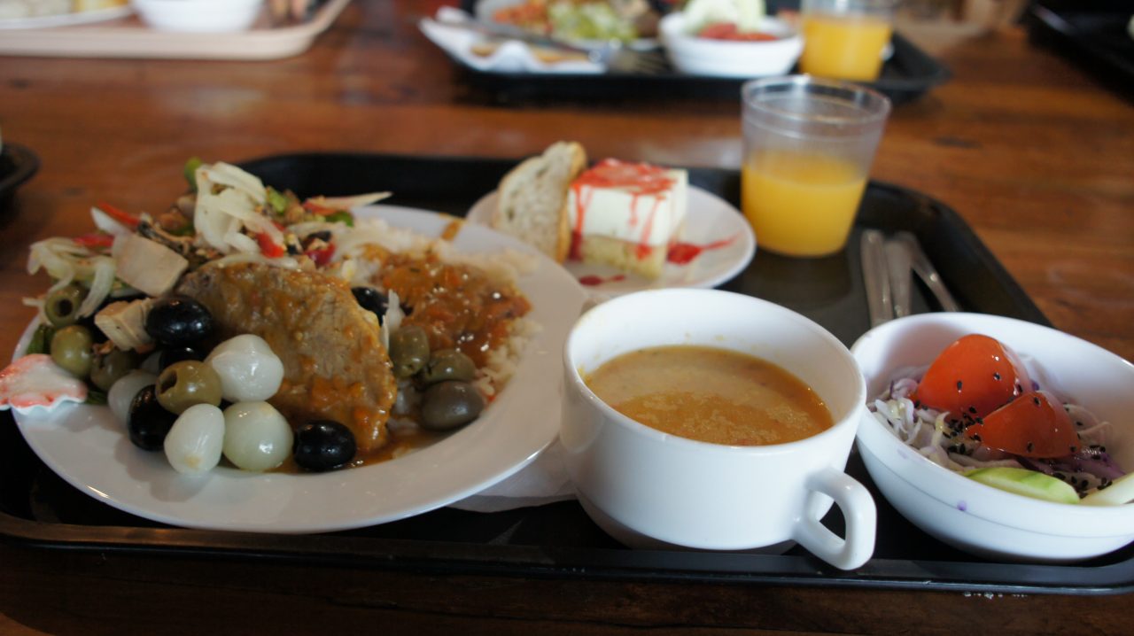 아침식사도 역시 2부제로 나누어 제공하는데 아주 간단한 부페식으로 토스트와 시리얼을 중심으로 치즈, 삶은 달걀, 잼 그리고 우유, 커피 등이 제공된다. 점심 도시락도 전날 주문하면 만들어 준다. 샌드위치에 오렌지, 초콜릿, 곡물로 만든 에너지바 같은 것 그리고 여러 가지 너트(nut) 모음 이 들어 있다.