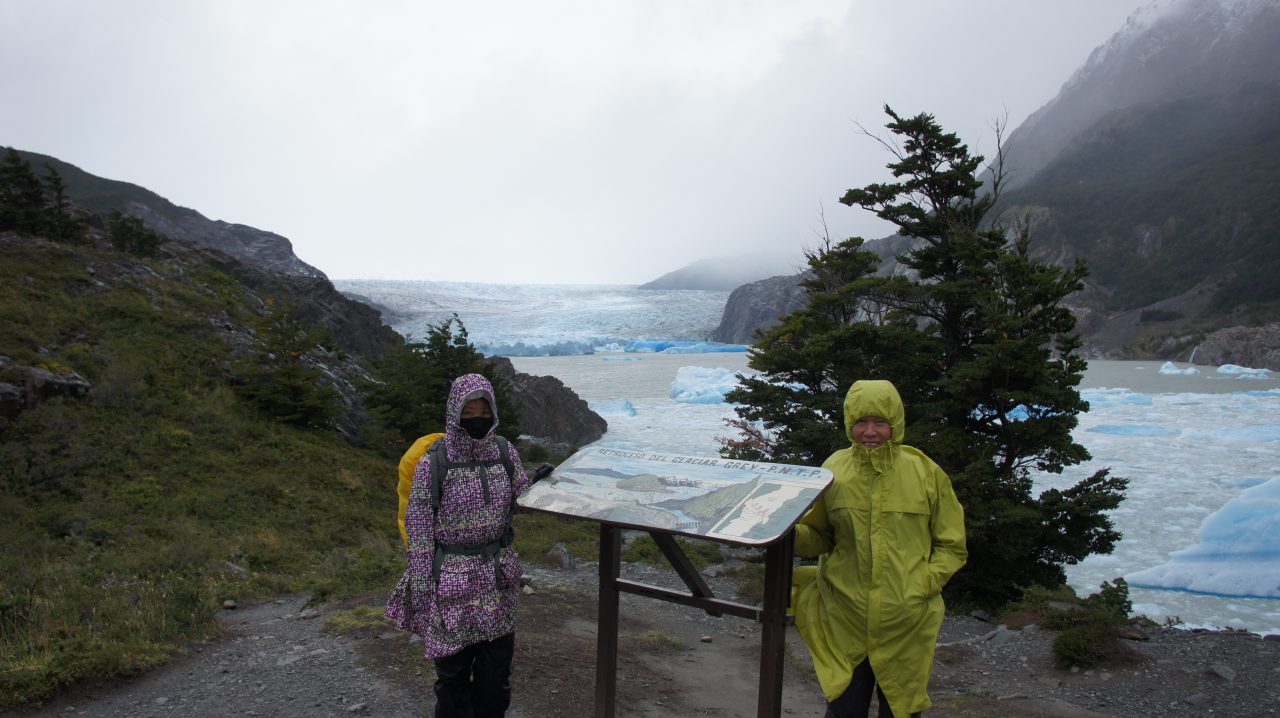 3시간 반 정도 걸어 그레이 빙하 산장에 도착하였다. 산장은 나무가 우거진 숲속에 위치하고 있어 바람의 영향을 훨씬 덜 받을 것 같았다. 멀지 않은 곳에 캠핑장도 위치하고 있다. 역시 숲속에 위치하고 있다. 그레이 빙하 전망대는 여기서 다시 15분 정도 더 걸어야 한다.