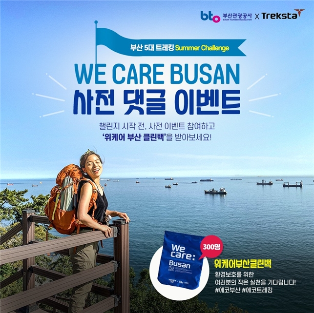 부산관광공사(이하 공사)는 트렉스타와 공동으로‘부산 5대 트레킹 썸머 챌린지’이벤트와‘We Care Busan’캠페인을 진행한다.