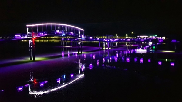 퍼플교의 보라색 조명은 야간에 바닷물과 만나면 야간 조명의 끝판왕으로 느껴질 정도로 아름다움을 선사해 보는 이로 하여금 놀라움을 주기도 한다.