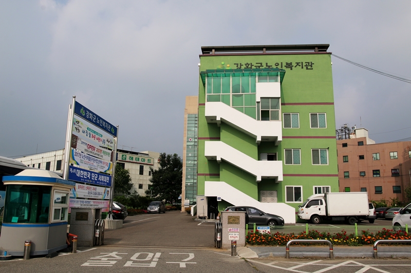 버스터미널을 나와 우측으로 걸으면 곧 풍물시장을 만나게 됩니다. 도로를 따라 아래로 내려가면 강화군 노인복지관이 나옵니다.