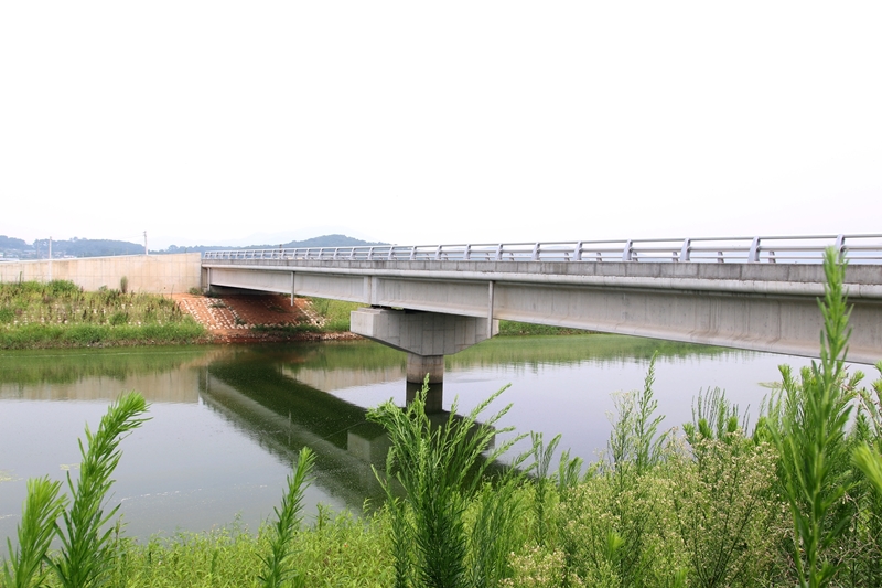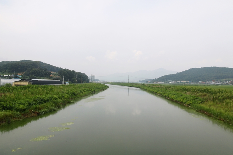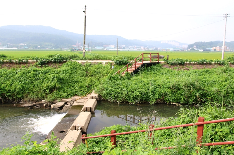 그대로 직진해서 나가다 보면 옆의 개울을 건너는 다리가 나타납니다. 조심스레 건너 반대편으로 나온 후 쭉 뻗은 농로따라 걸으면 됩니다. 내려오던 방향으로 이어 내려가는 것이 아닌, 옆으로 나아가는 길 입니다.