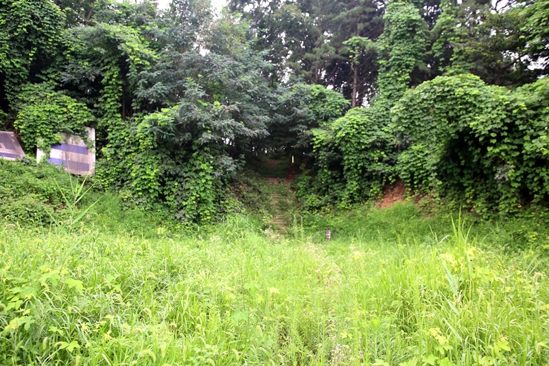 내려가는 곳으로 짐작되는 곳에는 도저히 경사와 잡초의 우거짐이 풀을 헤치고 밟을 수준이 아닌지라, 무덤가의 오른쪽 끝으로 나아가 내려가기로 합니다.