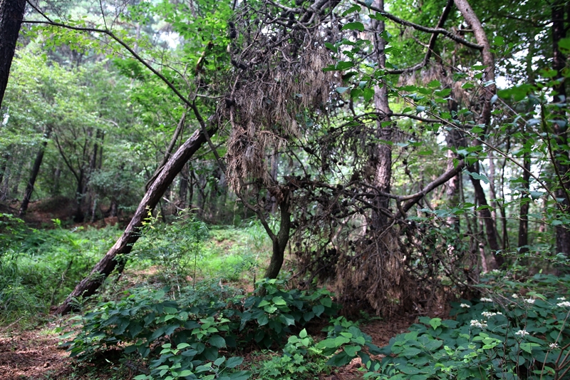 오르막길따라 공장 옆을 오르는 구간에는 가시나무와 덩쿨이 있어 매우 따갑습니다. 걸을 때 조심하세요.
