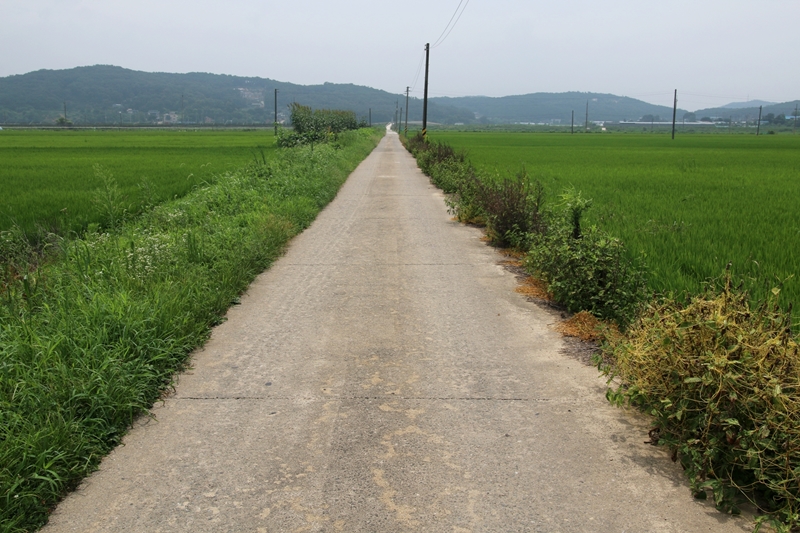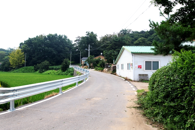 마을길을 따라 논을 지나 다시 도로로 접어듭니다.