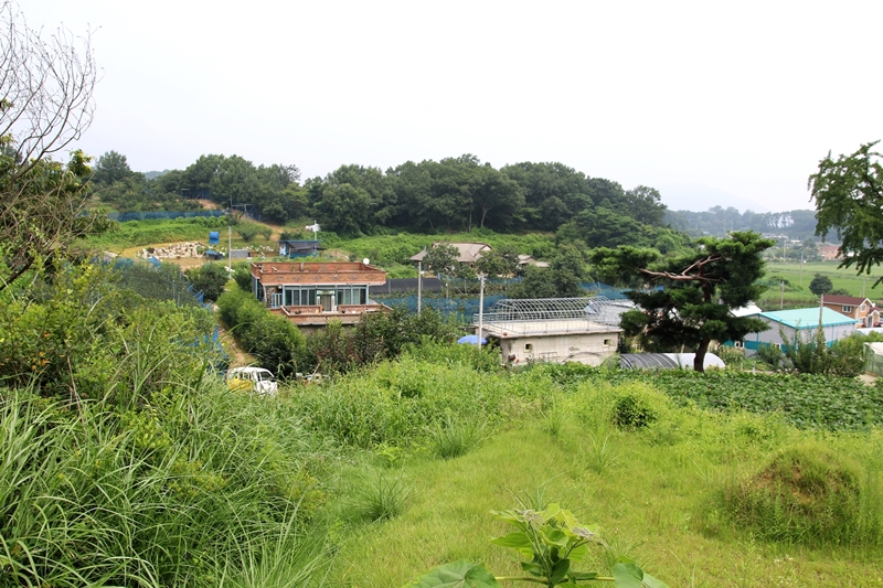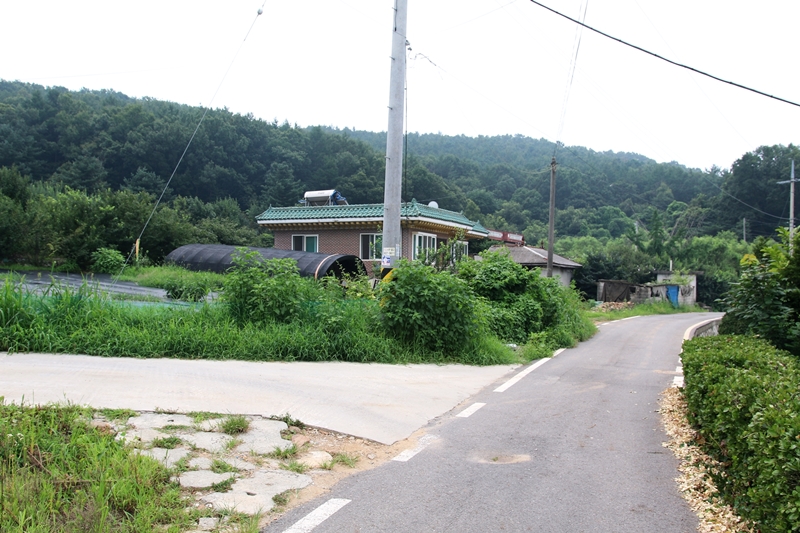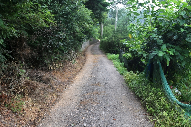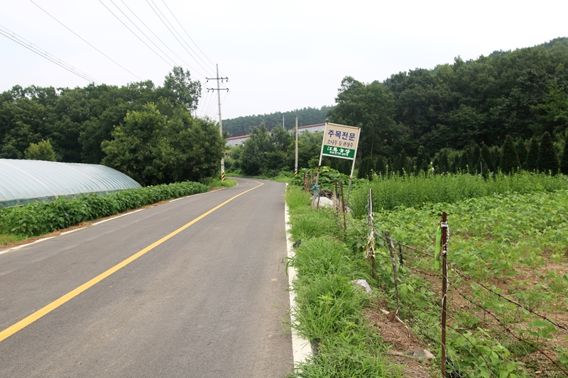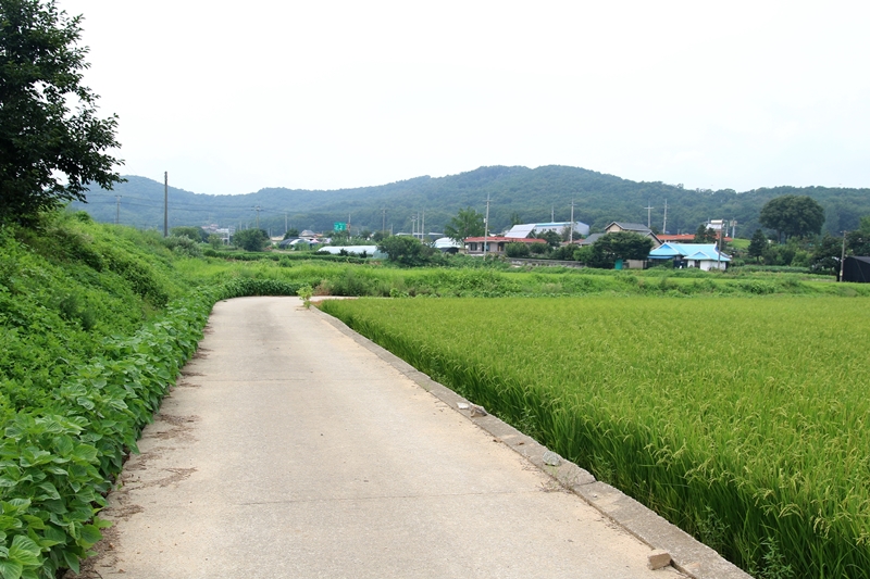 아래의 농로를 따라 5~600m가량 걸으면 (중간에 빠지는 길이 있더라도 주변 집으로 난 길이고 도로가 아닙니다.)