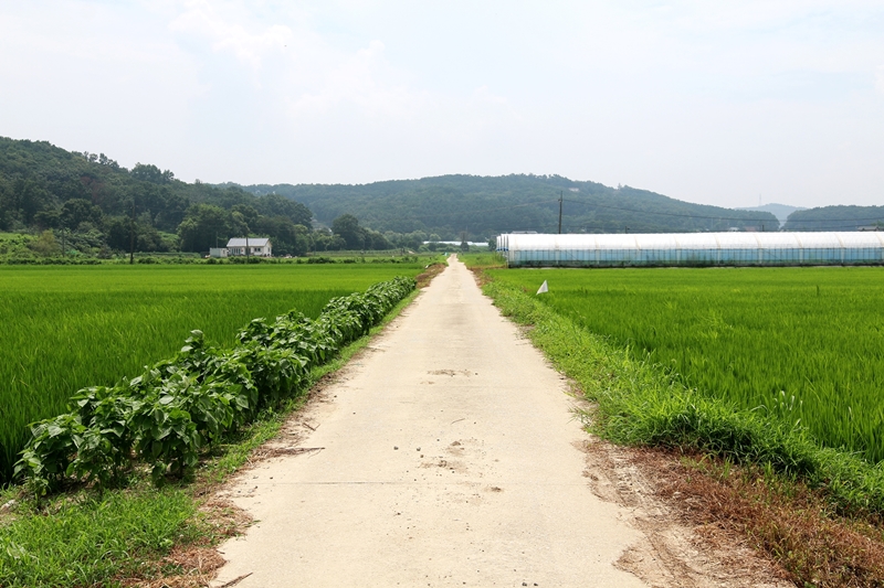 원두막을 나와 길게 뻗은 농작로를 따라 걷습니다.