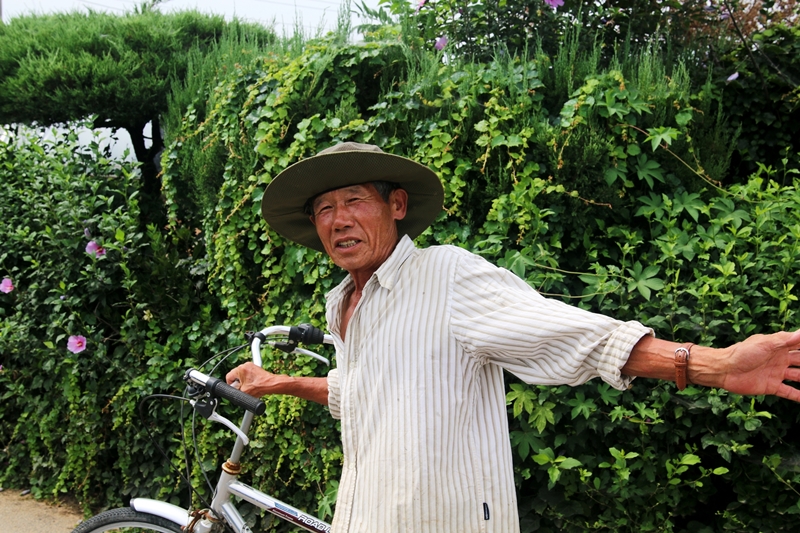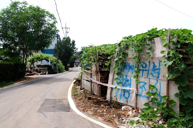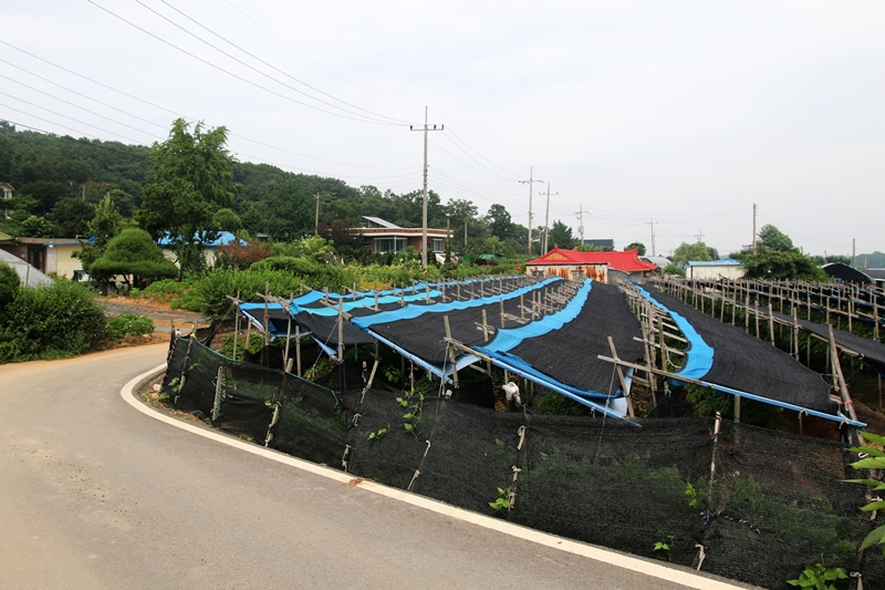 잘 꾸며진 집 앞을 따라 장안마을에 들어섭니다. 마을 회관을 지나 인삼밭을 들어서는데 자전거를 타고 지나가던 마을 어르신이 저를 붙잡습니다.