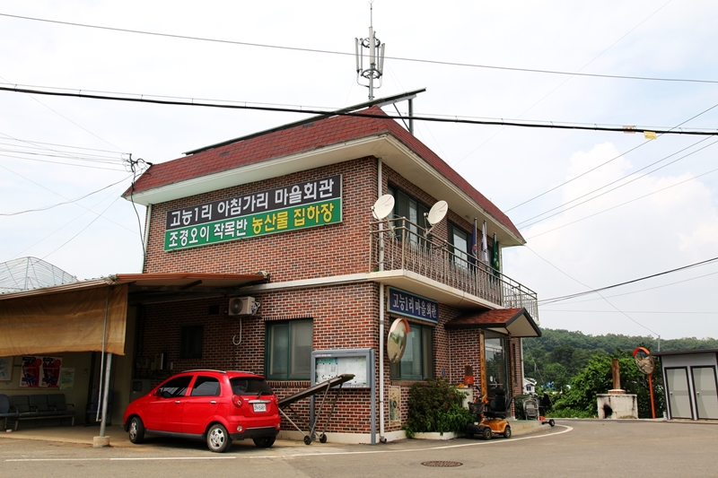 갈림길에서 우측으로 올라가 고능1리 마을회관에 닿습니다.