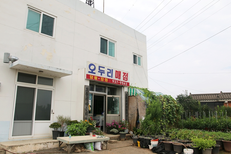 이렇게 도로를 다시 보니 참 기쁩니다. 평화로운 오두리 마을을따라 걷다보면 오두리마을회관과 매점이 나타납니다.
