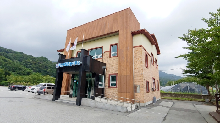 충남 예산군 가야산 자락, 그 아래에 위치한 덕산도립공원 사무소. 그 건물 2층에 내포문화숲길 예산 탐방센터가 위치해 있다.