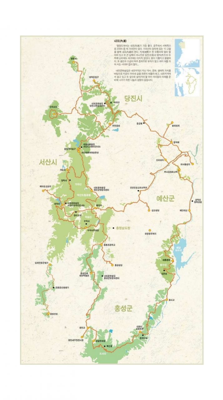 그렇게 주변을 조사하고 노선을 선정하는 과정 속에서 가야산만이 아닌, 이 내포문화권역만이 가진 다양한 역사, 문화자원이 있다는 것에 착안하여 “내포문화숲길”이라는 이름으로 공모하면서 이렇게 시작하게 되었다.