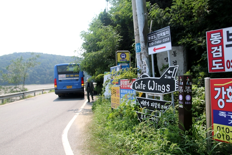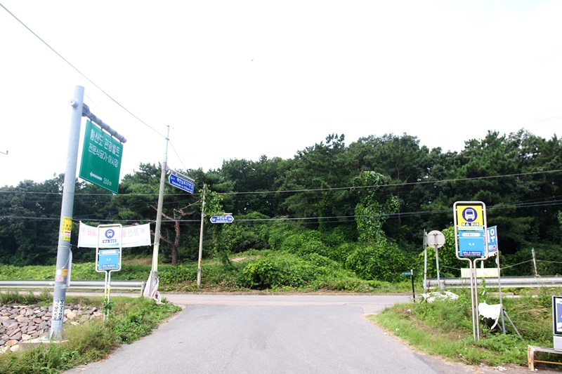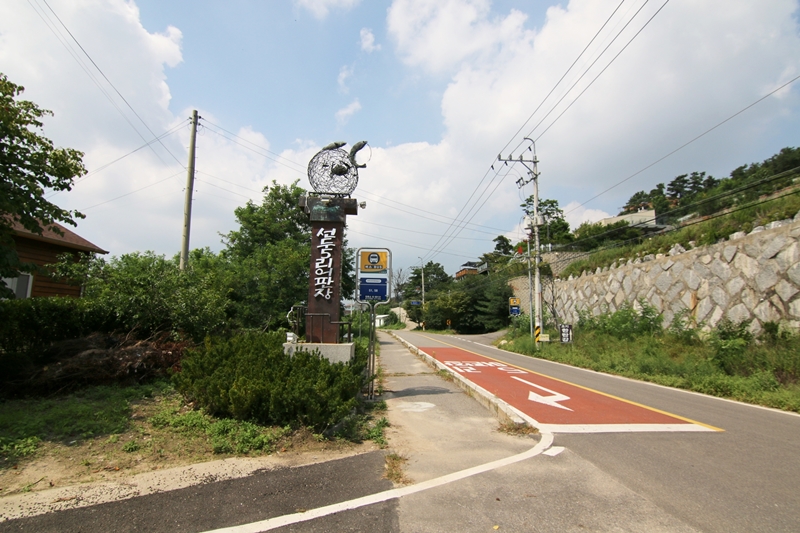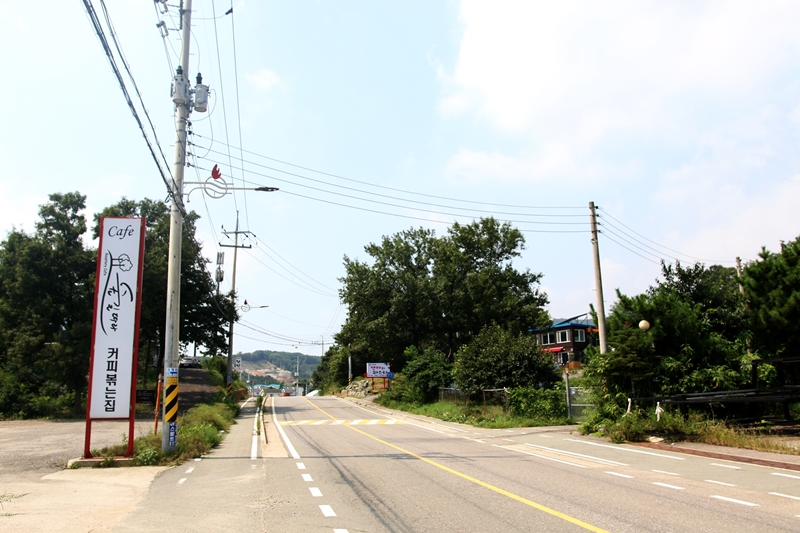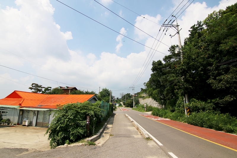 갈림길을 지나면 장어집 앞에서 휘어지는 도로에 작은 쉼터가 있습니다. 여기에서 1차 휴식을 취하도록 합니다.