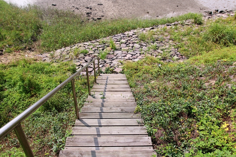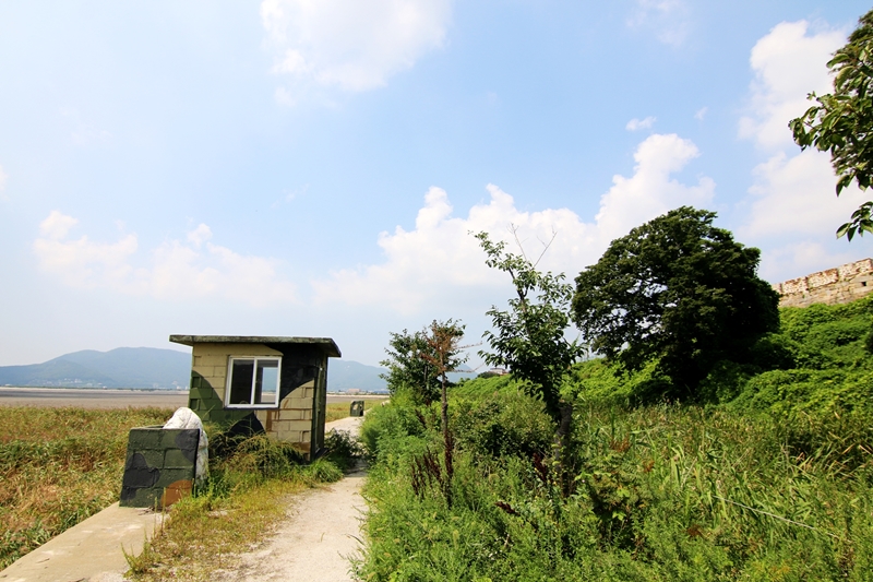 끝없다고 느껴질 정도의 제방을 다라 걷다보면 중간에 해안초소가 나옵니다. 해안초소 앞의 타이어계단을 따라 내려간 후 다시 제방으로 오릅니다.