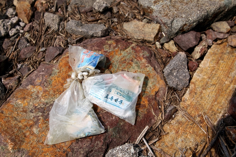 비닐봉투 안에 바닷물이 가득 차 있어 별도로 수거, 신고하지 않고 지나치기로 합니다.