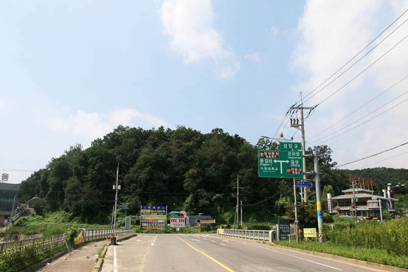 도로를 따라 섬암교를 지나면 갈림길이 나옵니다. 동검리 방면으로 걷도록 합니다.