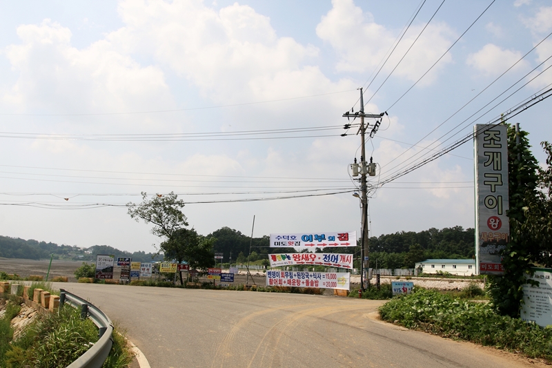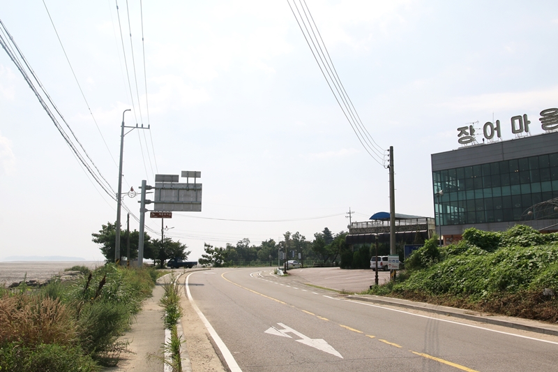제방길이 끝나면 도로로 나오게 됩니다. 이 도로를 따라 가다가 선두5리어판장으로 들어가는 길을 놓치지 않도록 조심해야 합니다.