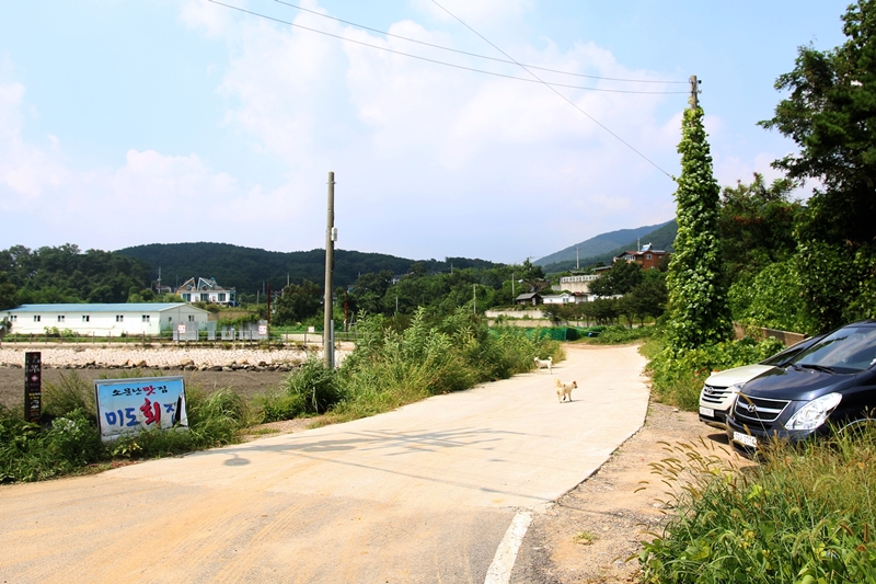 동검도를 건너에 두고 잘 포장된 해안길을 따라 걷습니다. 갑작스런 취재기자의 방문에 동네 강아지들은 동네가 떠나가듯이 짖으며 국방(?)의 의무를 수행하고 있습니다.