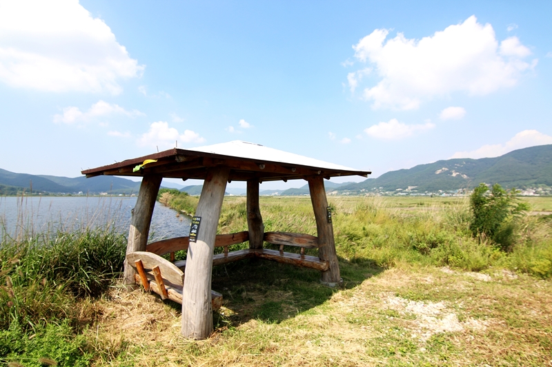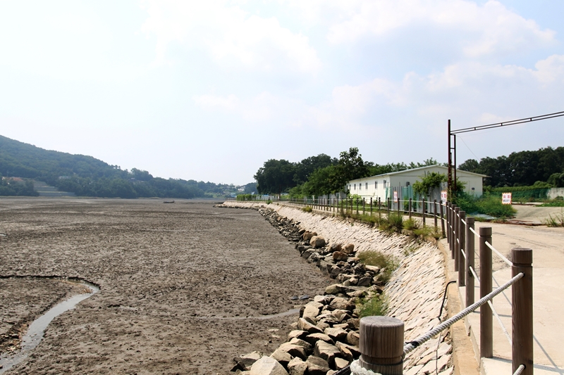 이후에는 꽤 긴 길이의 제방을 따라 걷게 됩니다. 쉼터는 있으나 그늘막이 없는지라 이 곳에서 충분히 쉴 수 있도록 합니다.