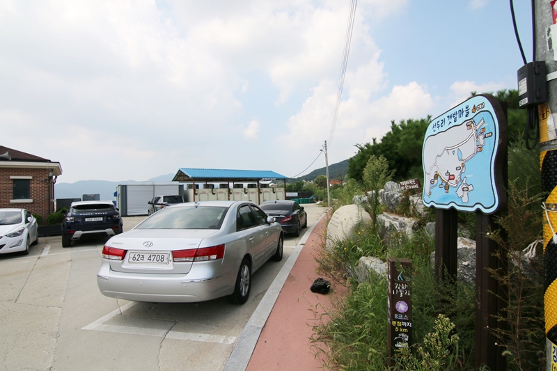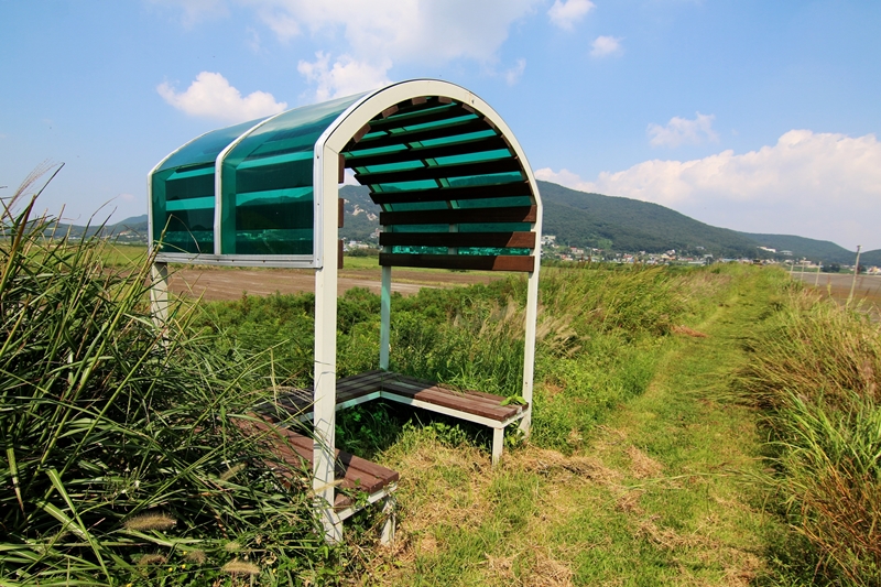 8코스는 전체적으로 그늘이 없는 길입니다만 이런 휴식 공간이 많으므로 중간중간 체력을 비축하며 수분을 섭취하도록 합니다.