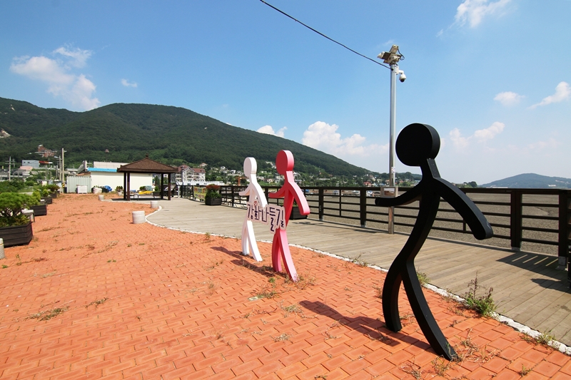 다양한 어구들과 어선의 통신장비, 작업복, 일지 등이 진열된 황산도어촌전시관을 지나 나아가니 나무데크가 나타납니다. 이 나무데크에 도장함이 설치되어 있습니다.